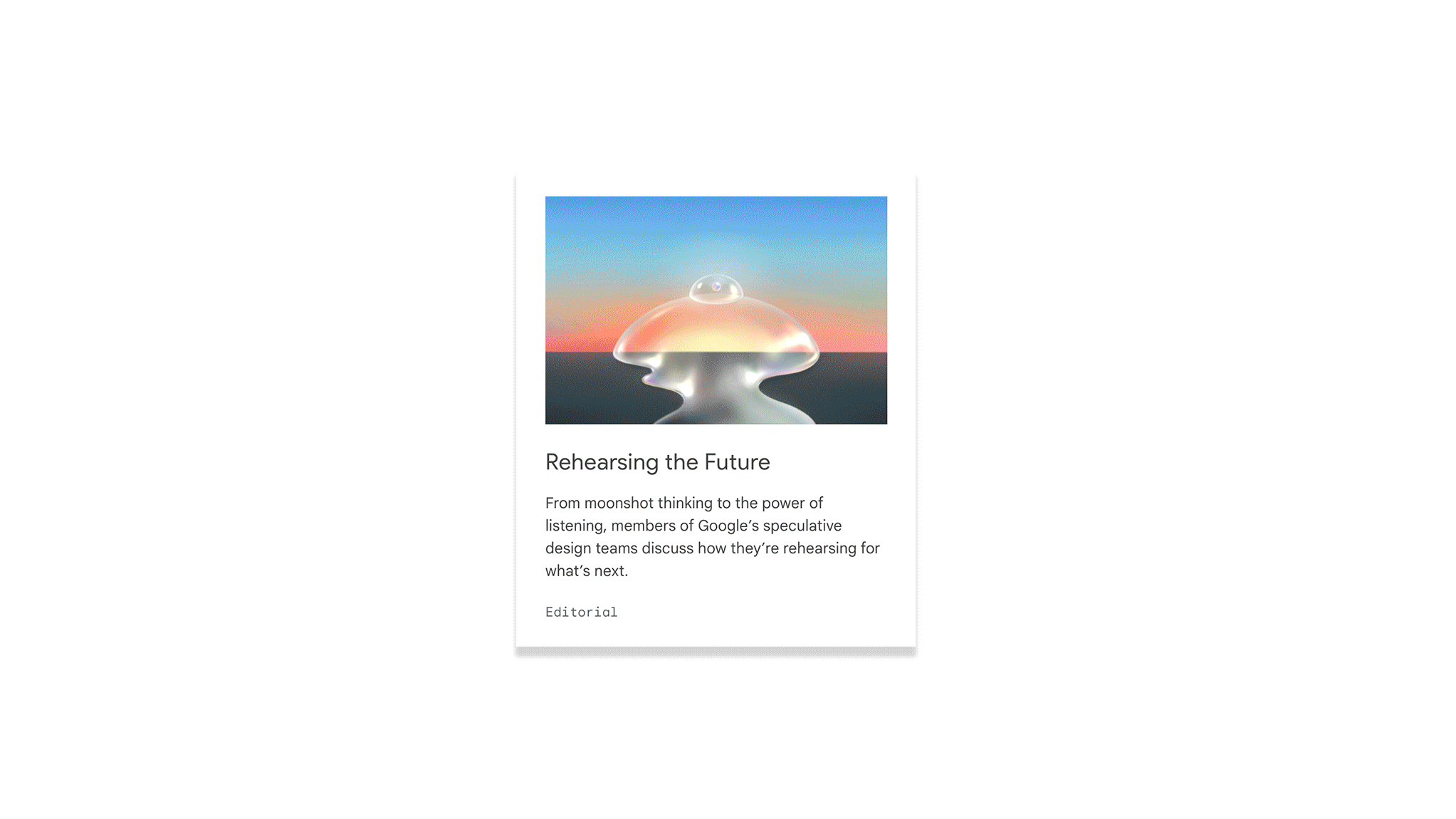 Google Design is a cooperative effort led by a group of designers, writers, and developers at Google. We work across design-focused teams at Google to publish original content, produce events, and foster creative and educational partnerships that champion the incredible work and thought leadership happening across the organization.